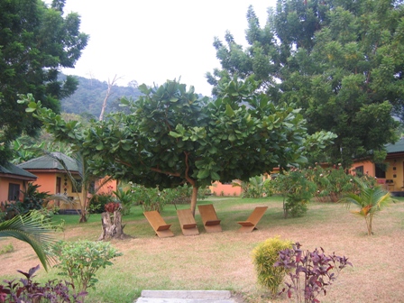 De Oosterijkse eigenaresse en haar Ghanese man hadden alles zelf ontworpen en laten bouwen, en ook het eten werd door hun zelf bereid. Het hotel bestond uit chalets tegen de heuvel aangebouwd en beneden was een strandje aan het meer. Een ideaal plekje om eens lekker bij te komen van de reis. |