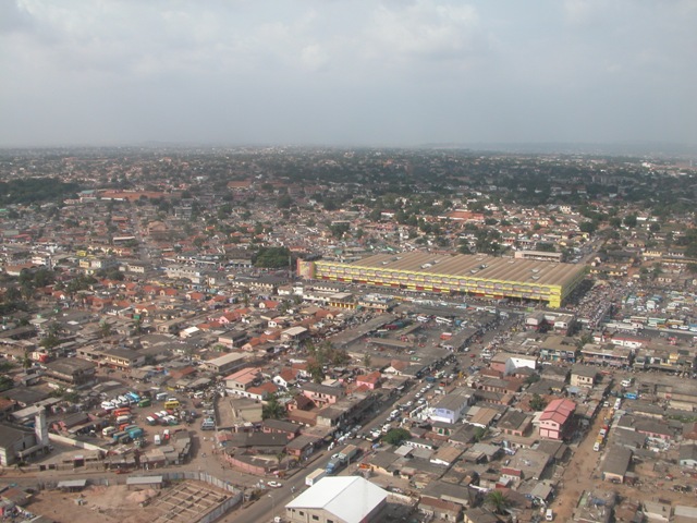 Ons kantoor in Accra Accra, met in het midden Kaneshie market